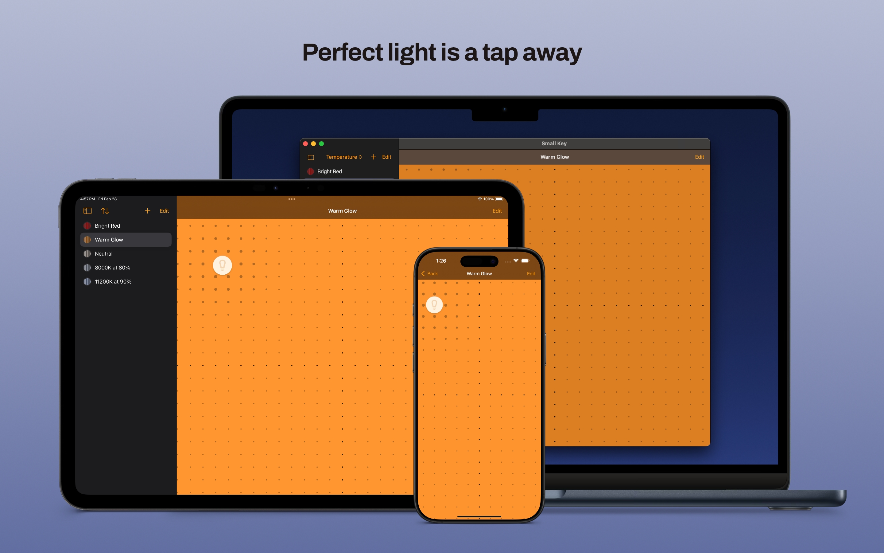 Instantly adjust brightness and color temperature with a tap or a drag. Your settings are saved automatically and synced across all your iCloud-enabled devices.